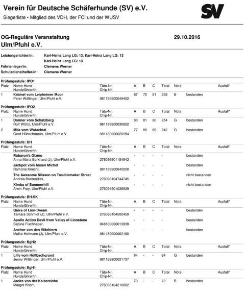 Am Sonntag den 10.07. fand das erstes Obedience-Turnier dieser Ortsgruppe statt. Es war das erste Obedience-Turnier überhaupt im Ulmer Raum. Die 16 Mensch-Hund-Teams lieferten trotz sehr sommerlichen, schweißtreibenden Temperaturen von 30° C bewundernswerte Ergebnisse ab. Wir bedanken uns herzlich bei den beiden Ringstewards Antonia Berzen und Johanna Holvoet, dem Prüfungsleiter Clemens Werner, sowie ganz besonders beim Prüfungsrichter Ewald Bönisch, der die Leistungen der Teams wie folgt beurteilte: