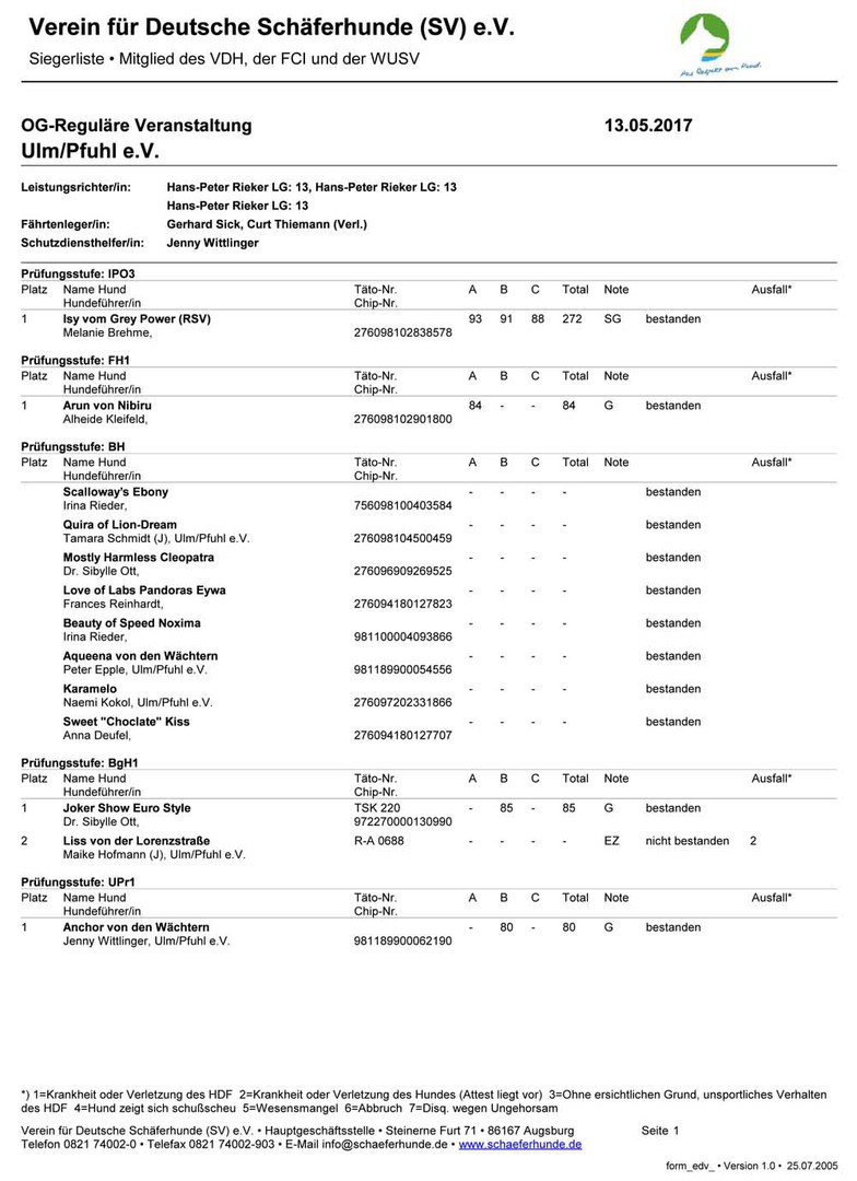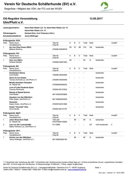 Wir gratulieren allen Teilnehmern recht herzlich zu Ihren Ergebnissen und bedanken uns besonders bei den beiden Ringstewards Melanie Lux und Gundis Lang, der Ringhelferin Sandra Wiedl, der