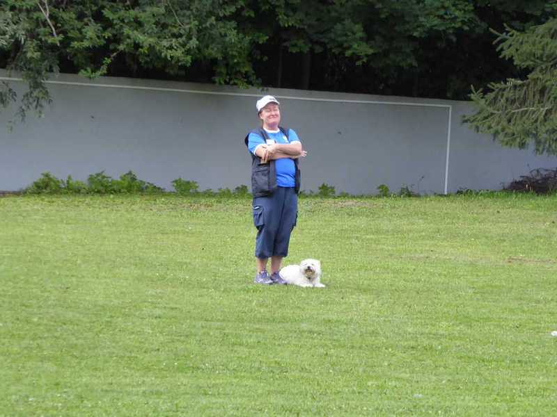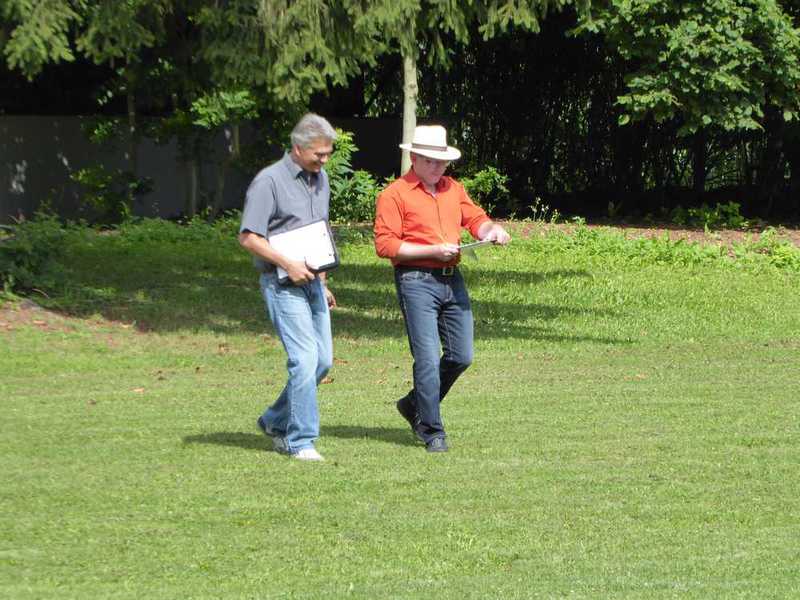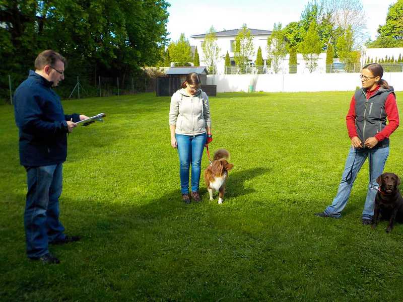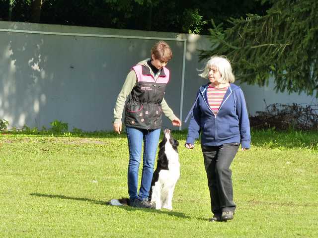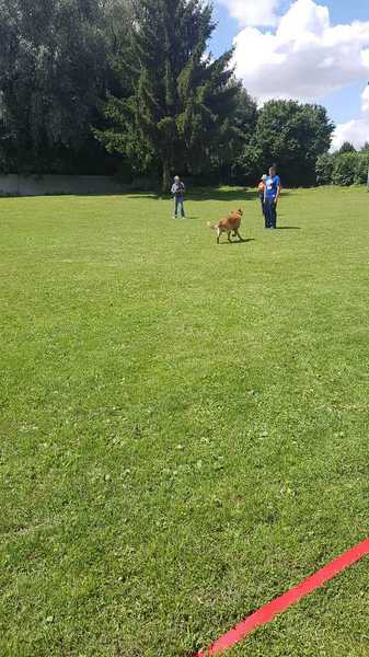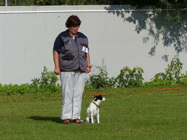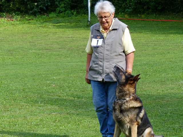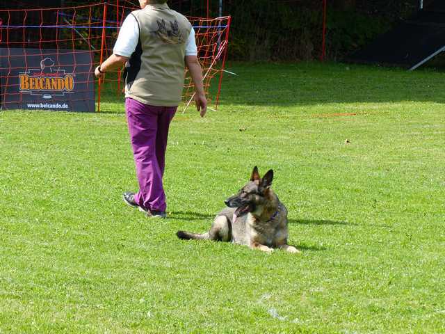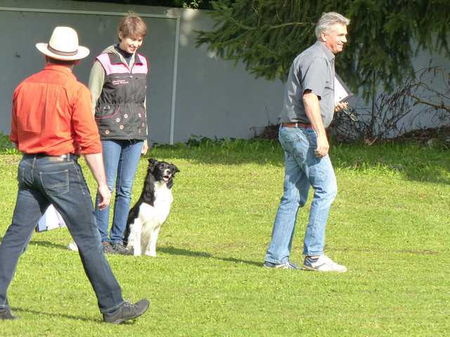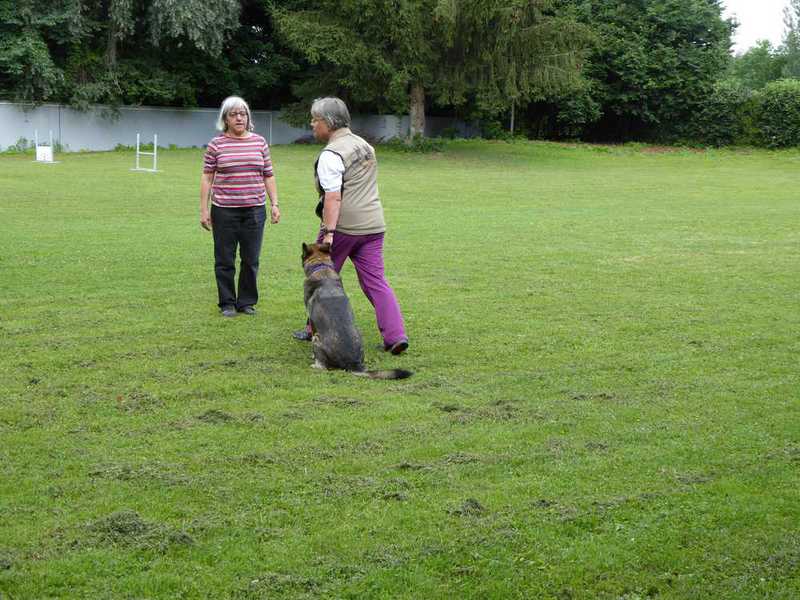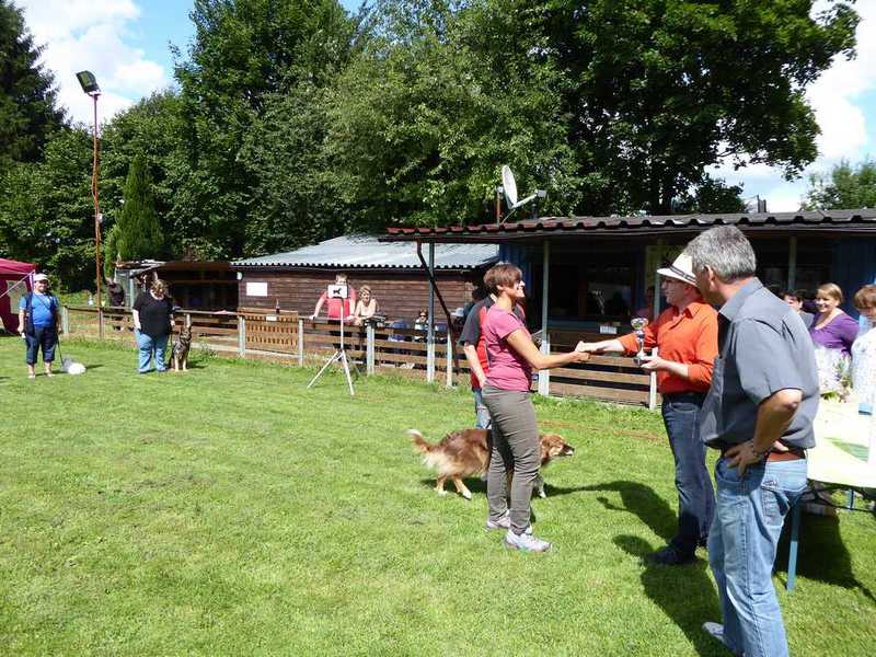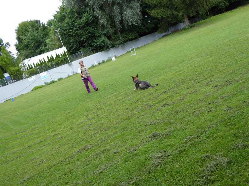 Richter Rieker und Richteranwärter Werner prüften zuerst 9 Teams in der Unterordnungsarbeit der BH-Prüfung, sowie 2 Teams die zur BgH1 antraten. Bei der BH-Prüfung hatte ein Hund auf "Bitte spiel mit mir"-Modus umgeschaltet und die Prüfung leider nicht bestanden. Bei den BgH1-Teams musste die fast 10 jährige Hündin Liss leider abbrechen, da sie sich vermutlich kurz vor der Prüfung gezerrt hatte und nicht mehr ohne Schmerzen laufen konnte.