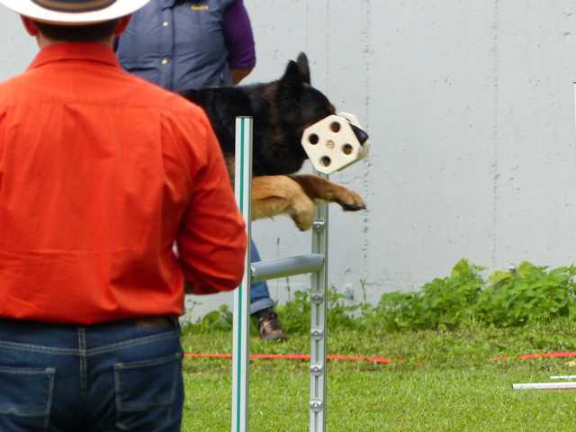 Lediglich zum Schutzdienstteil der IPO3-Prüfung ließ uns Petrus etwas im Stich und genau zu diesem Zeitpunkt schüttete es kurz wie aus Kübeln, was der Leistung der Hundeführerin mit ihrem Hund jedoch nicht anzumerken war. Das Team bestand die Prüfung erfolgreich.