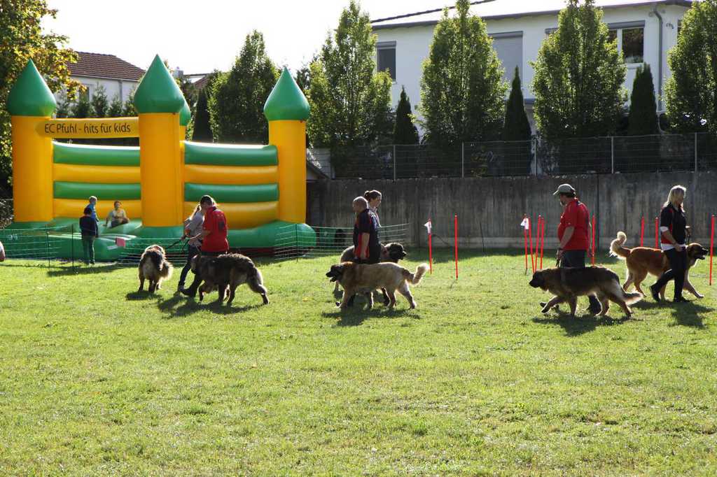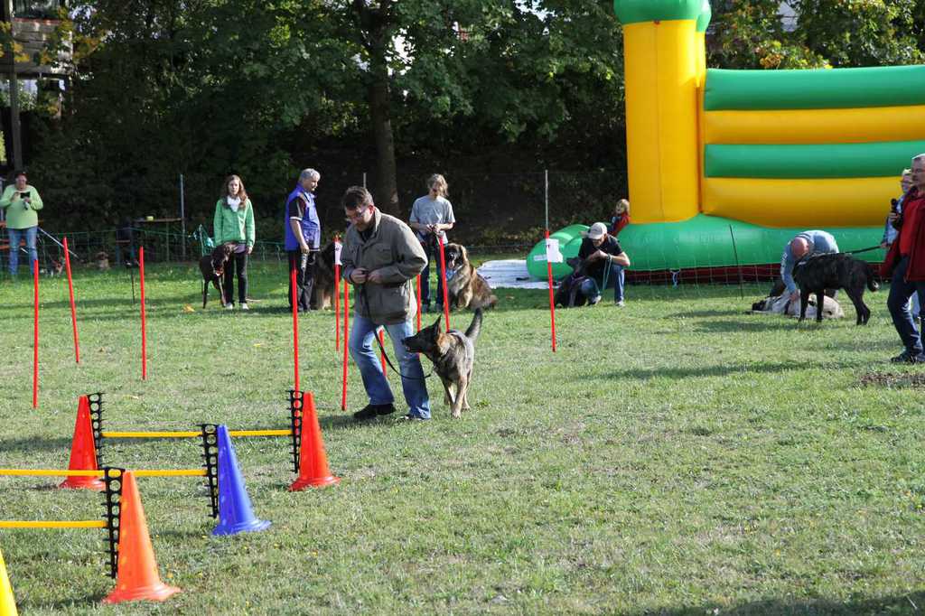 Es war einiges an Programmpunkten geboten. Angefangen bei Vorführungen im Bereich Unterordnung, Schutzdienst, Obedience und Leonberger Gruppe, über Hüpfburg, Kinderschminken, Malwettbewerb und Specksteinbasteln für die Kinder, bis hin zum Geschicklichkeitsparcours in unterschiedlichen Hundeklassen.