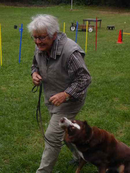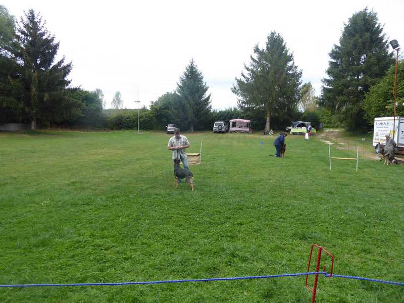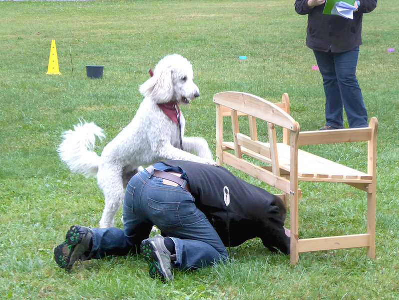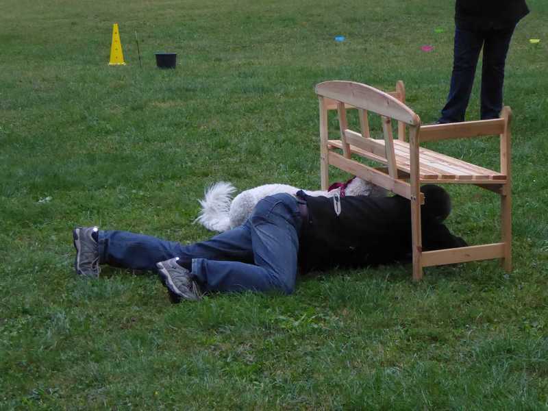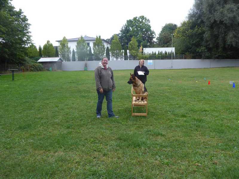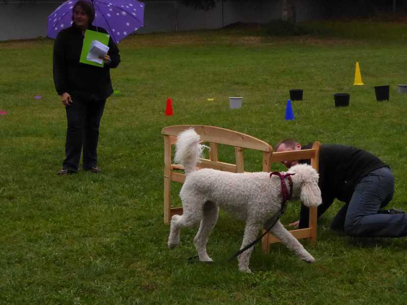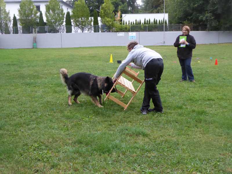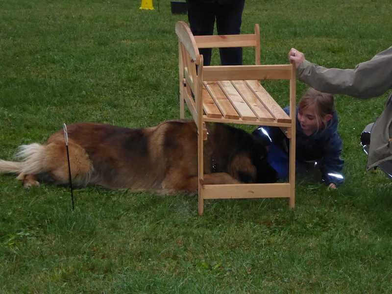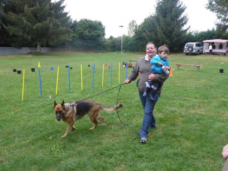 Nicht nur Vorführungen waren eingeplant. Wir wollten auch den interessierten Gästen die Möglichkeit bieten an diesem Tag, selbst mit ihrem Hund etwas zu erleben. Hierfür boten wir abschließend einen „Geschicklichkeits-Parcour“ mit Prämierung an. Dieser wurde von unserer Jugendwartin Sandra Wiedl gestellt und durchgeführt. Die Teilnehmer nahmen die Herausforderung an und zeigten großes Geschick mit ihren Hunden. Wobei mancher Hund nicht verstehen konnte, warum er unter einer Bank hindurch soll und das Frauchen/Herrchen nichts spricht. Aber schließlich hieß gerade doch diese Station „ohne Worte“.