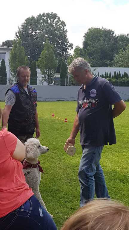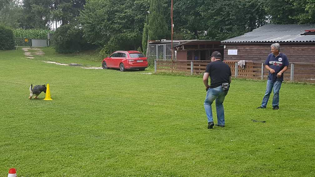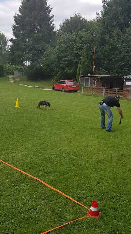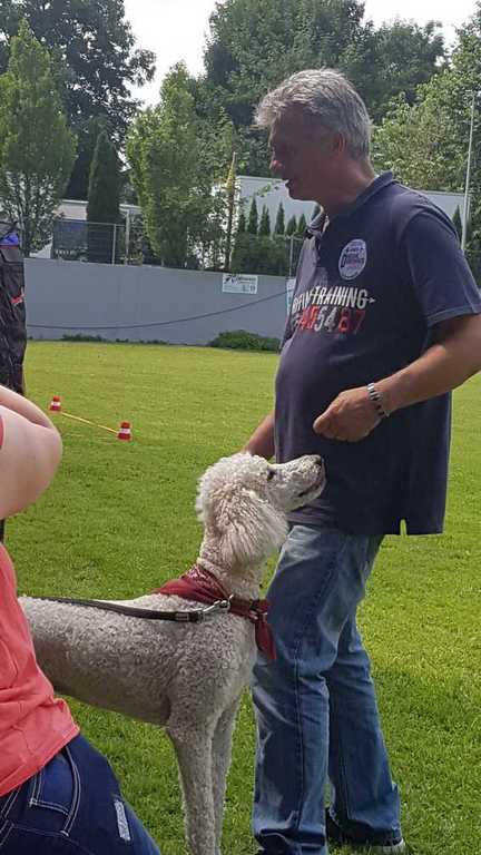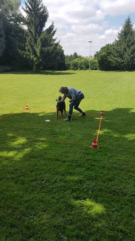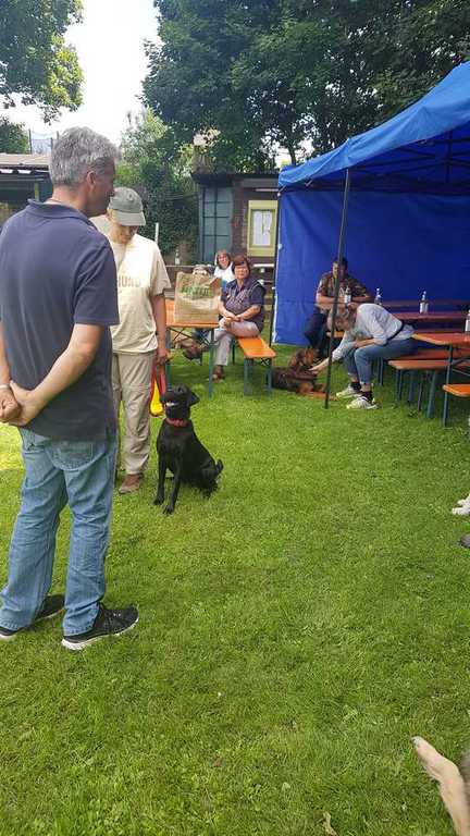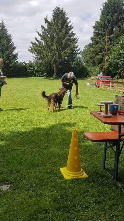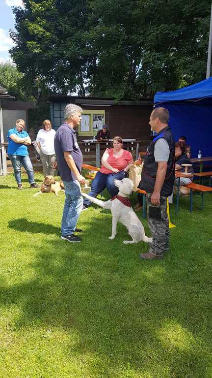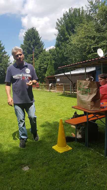 Eigentlich hätten wir uns beim Trainer Rainer Sydow jederzeit leckere Würstchen abholen können, jedoch hielten Frauchen und Herrchen uns mit neuen Ideen, flotter Fußarbeit und mächtig viel Schwung davon ab. Welch tolle Idee – Rainer Sydow gab diesem Würstchen auch einen Namen – Ablenkung.