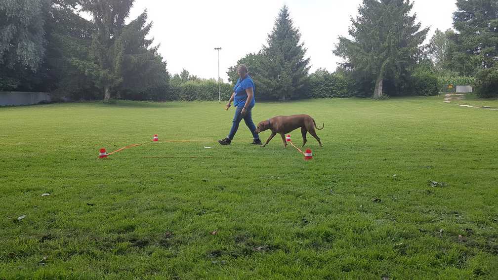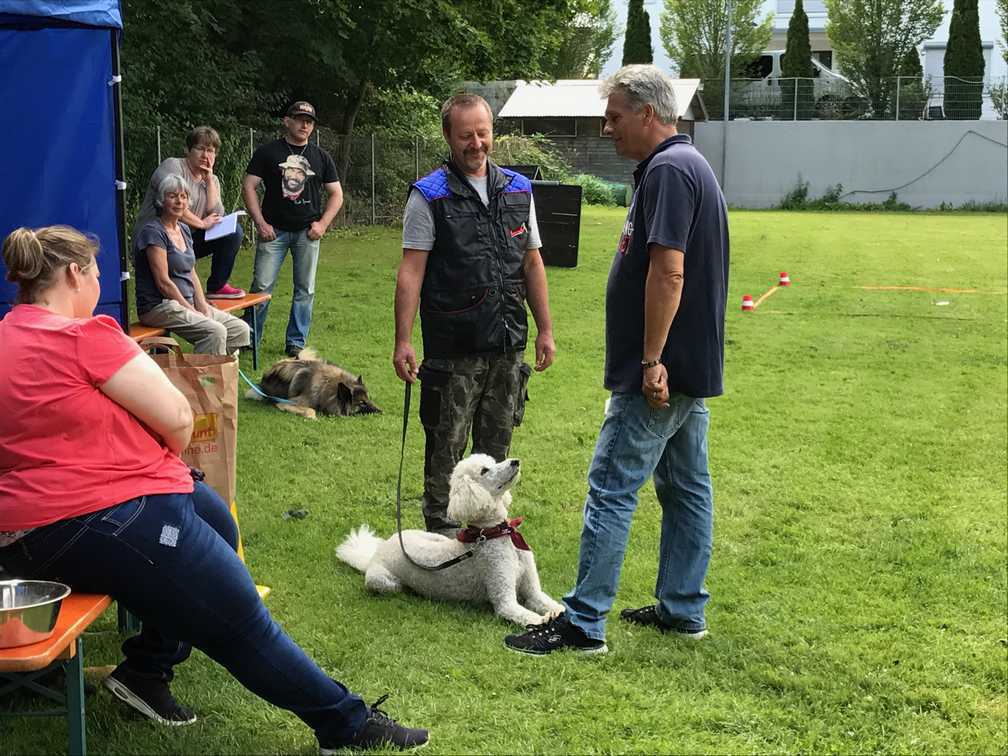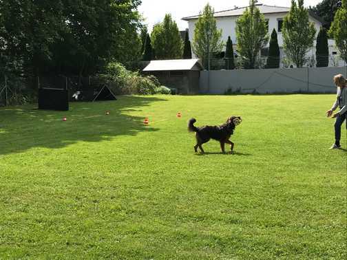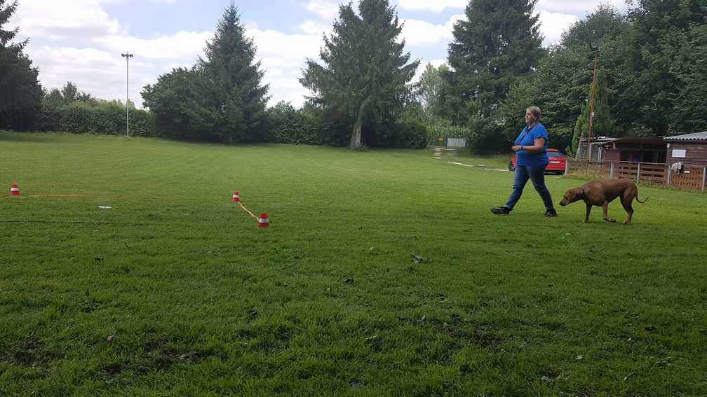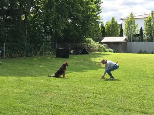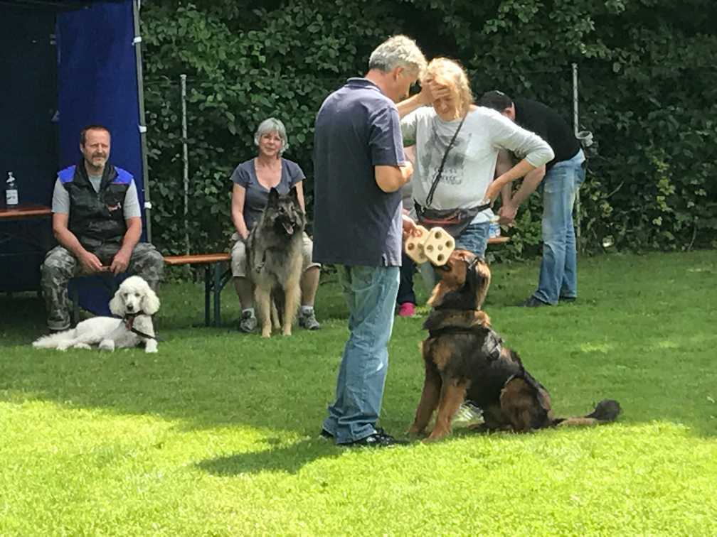 Eigentlich hätten wir uns beim Trainer Rainer Sydow jederzeit leckere Würstchen abholen können, jedoch hielten Frauchen und Herrchen uns mit neuen Ideen, flotter Fußarbeit und mächtig viel Schwung davon ab. Welch tolle Idee – Rainer Sydow gab diesem Würstchen auch einen Namen – Ablenkung.