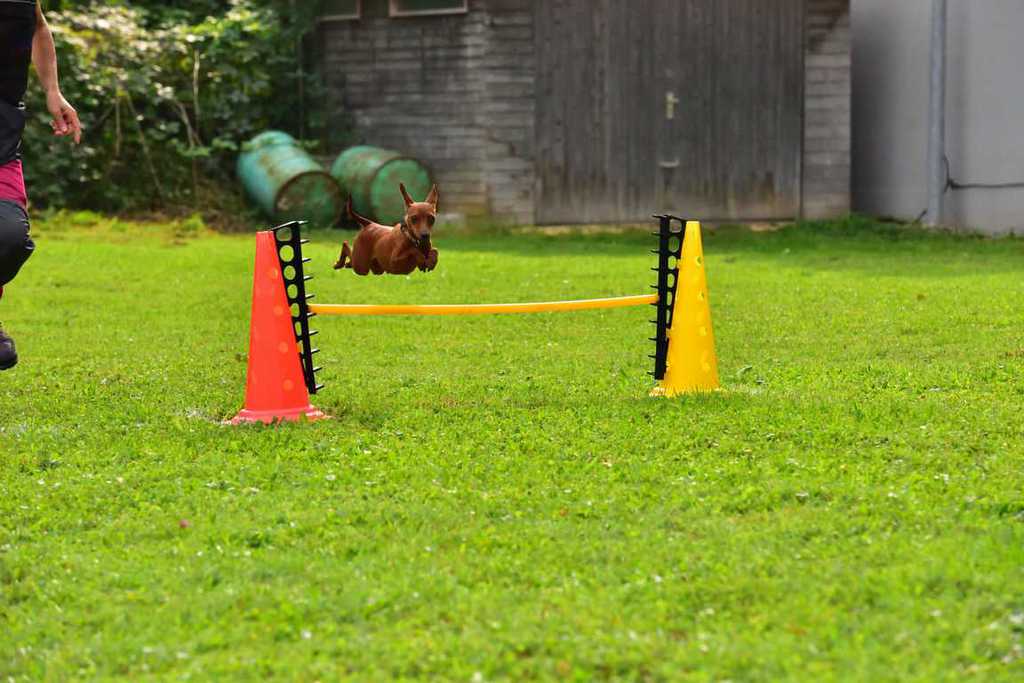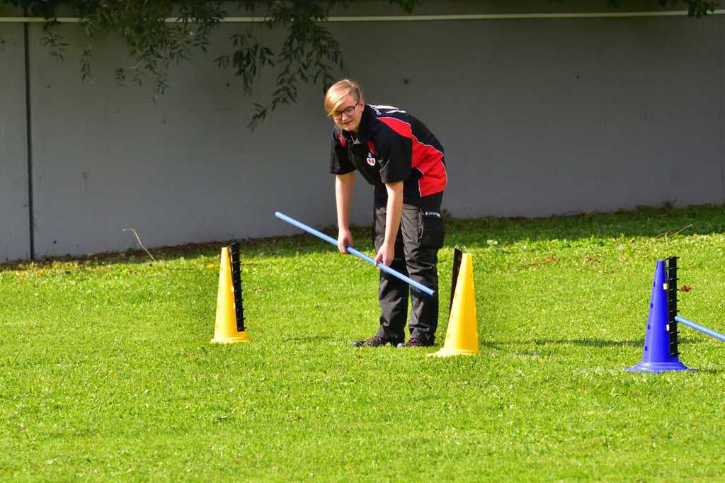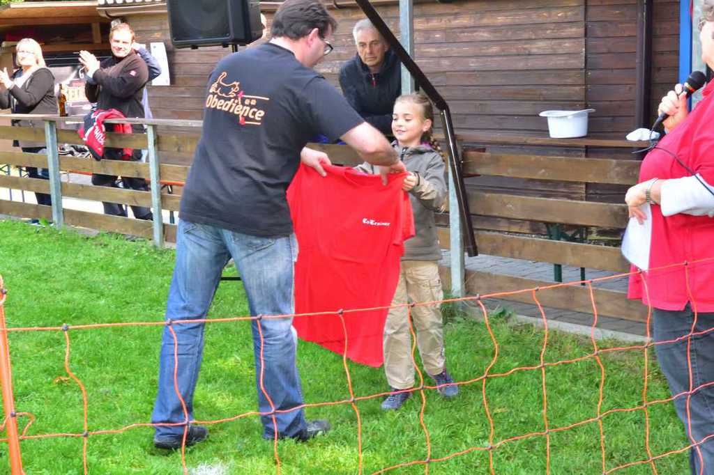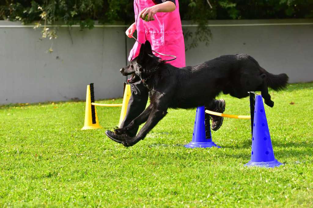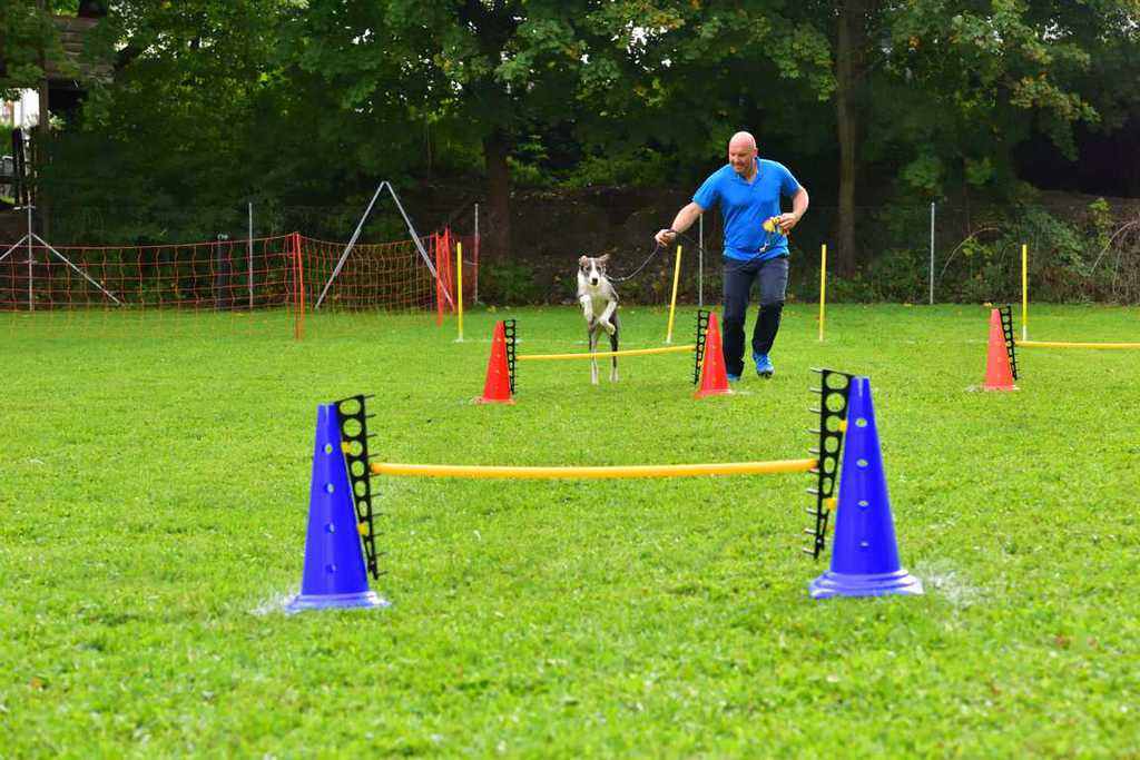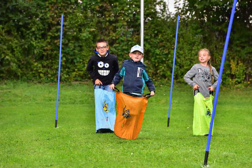 Im Anschluss an die Vorführungen konnte dann jeder Gast sich mit seinem eigenen Hund am Hundeparcours versuchen. Für die Kinder gab es die Möglichkeit den Parcours statt mit Hund „sackhüpfend“ zu absolvieren.