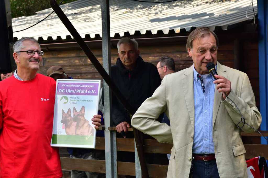 Anfang des Jahres hat die Ortsgruppe Ulm/Pfuhl e.V., es geschafft alle erforderlichen Voraussetzungen für eine Zertifizierung zu erfüllen und auf deren Antrag hin wurden diese im Juni vom Verein für Deutsche Schäferhunde (SV) e.V. „zertifiziert“. Aus diesem Grund freuten sich die Mitglieder ganz besonders über den Besuch der Jugendwartin Silke Breitinger und des Pressereferenten Bernd Mayer der Landesgruppe Württemberg, welche die freudige Aufgabe hatten, die offizielle Übergabe der Zertifizierungsurkunde zu übernehmen.
