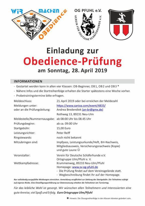 Alle weiteren Infos können unter folgendem Link eingesehen werden: https://www.caniva.com/event/4833